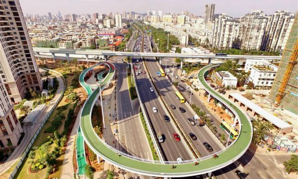廈門空中自行車道示范段(BRT洪文站——BRT縣后站)2016年09月14日開工建設。2017年01月20日工程完成竣工。起點BRT洪文站,終點BRT縣后站,全長約7.6公里??罩凶孕熊嚨朗侨珖讞l、世界最長的廈門空中自行車道2017年01月26日試運行。全國首條、世界最長的空中自行車道——廈門云頂路自行車專用道示范段。這是一個采用戶外彩色防滑路面材料施工的經典實例。
